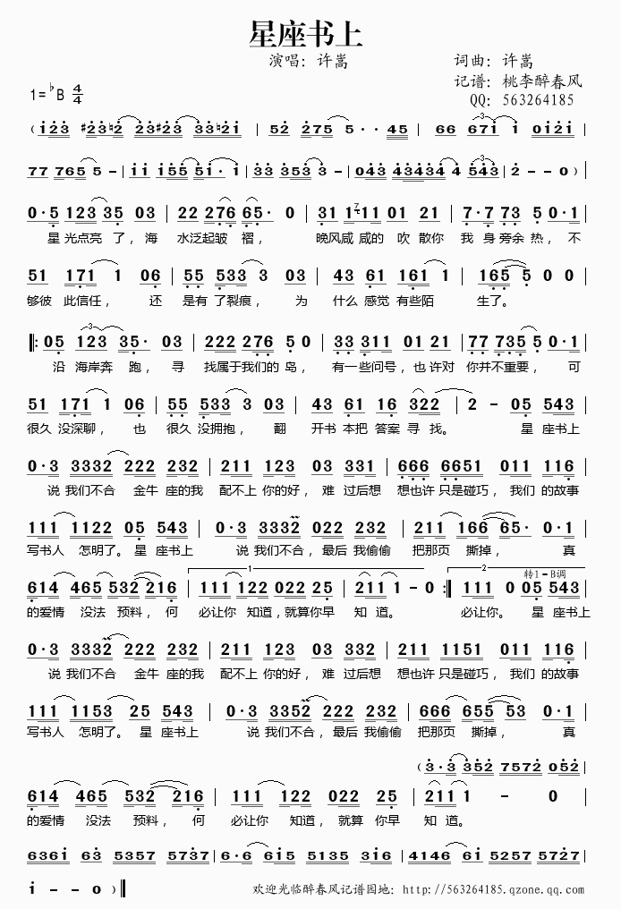 >> 星座书上——许嵩(简谱)
