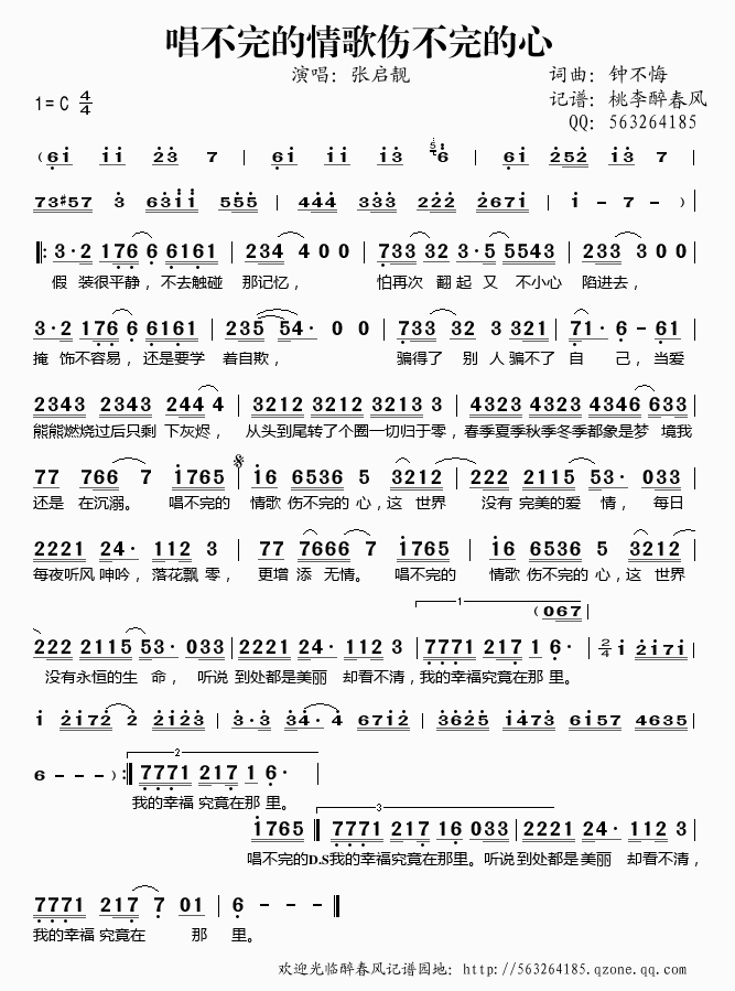 >> 唱不完的情歌伤不完的心——张启靓(简谱)