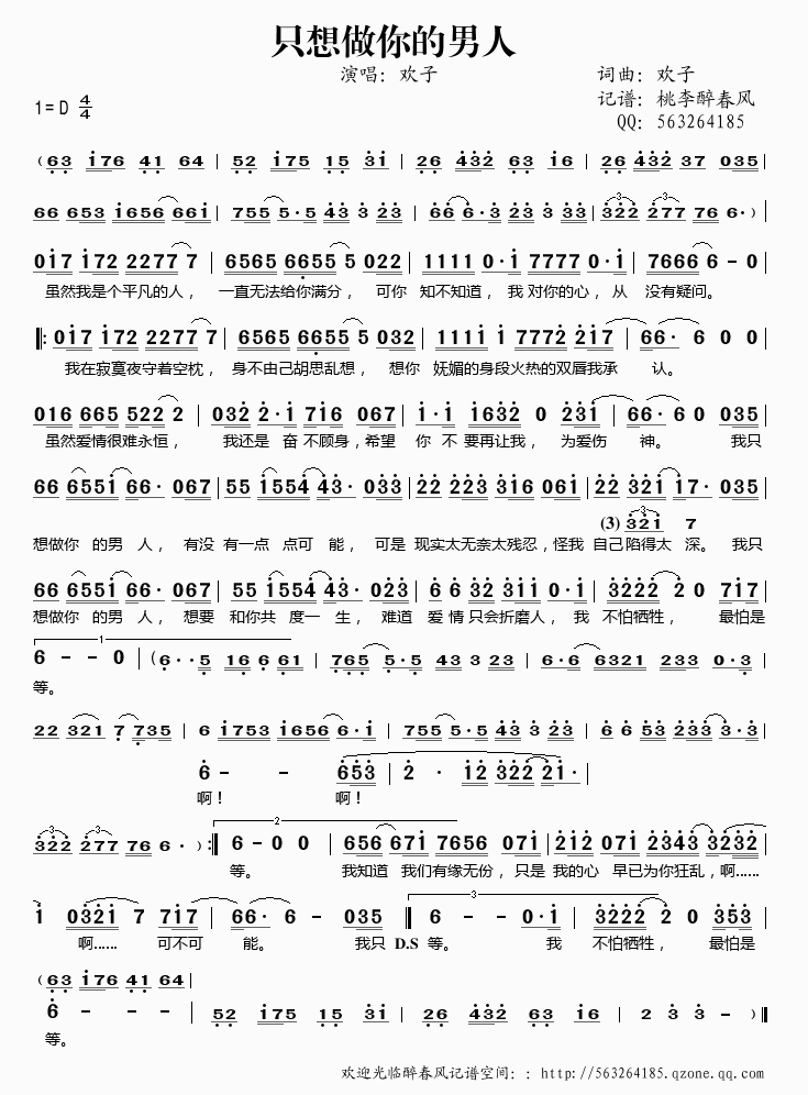 >> 只想做你的男人——欢子(简谱)