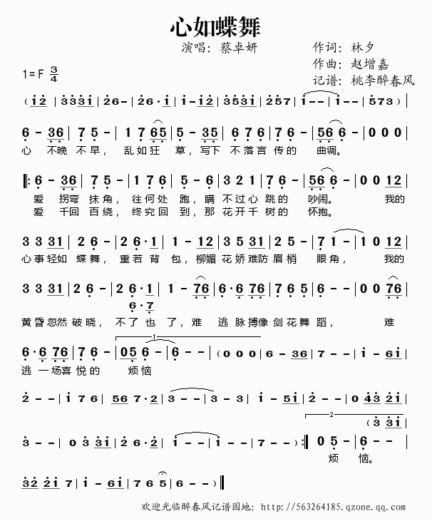 >> 心如蝶舞——蔡卓妍(简谱)