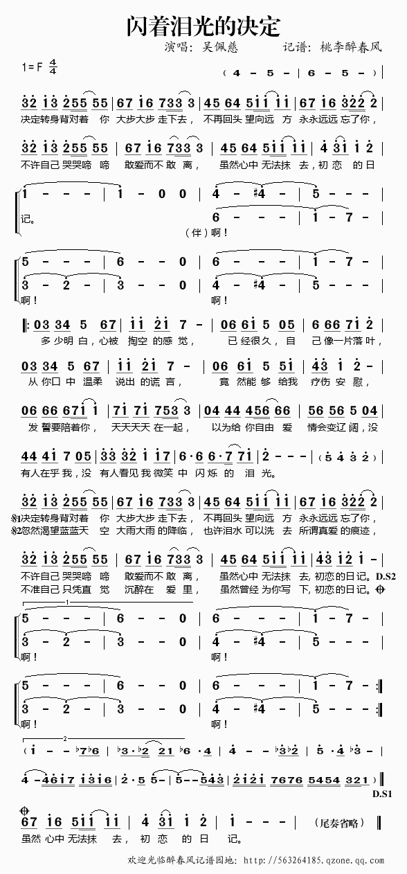 >> 闪着泪光的决定——吴佩慈(简谱)