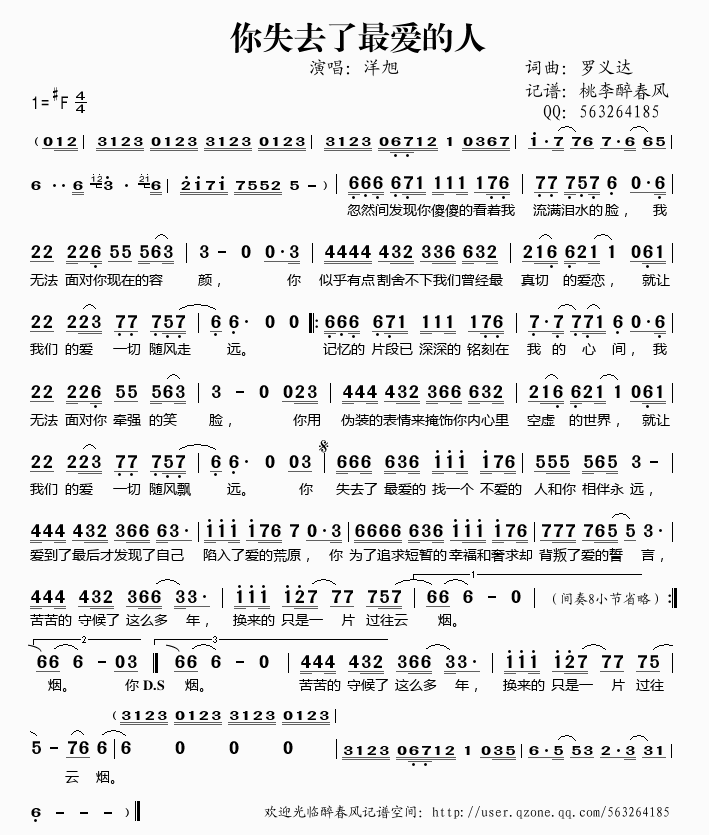 >> 你失去了最爱的人——洋旭(简谱)