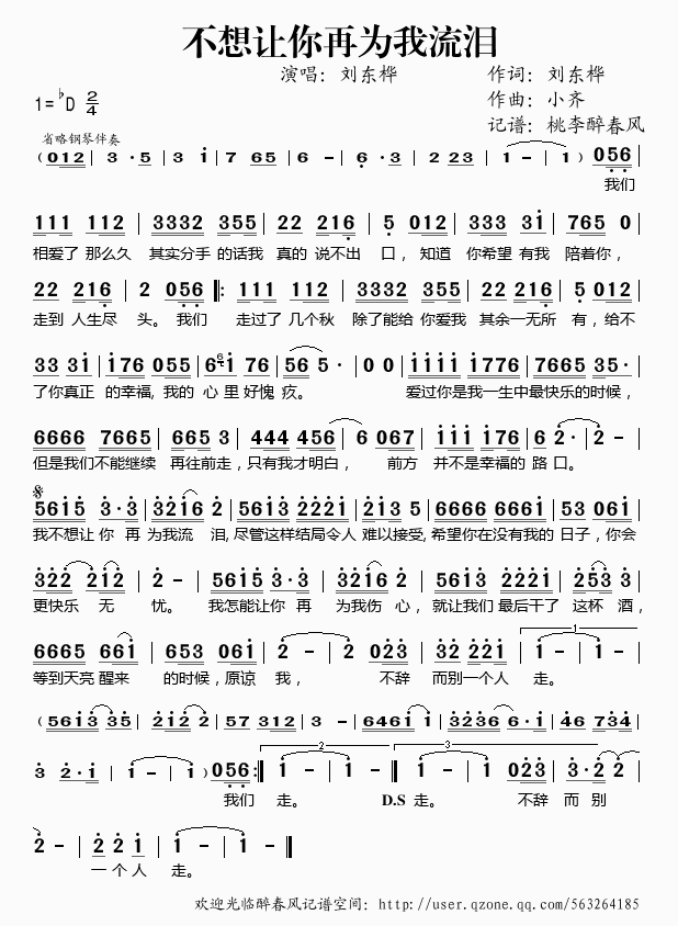 >> 不想让你再为我流泪——刘东桦(简谱)