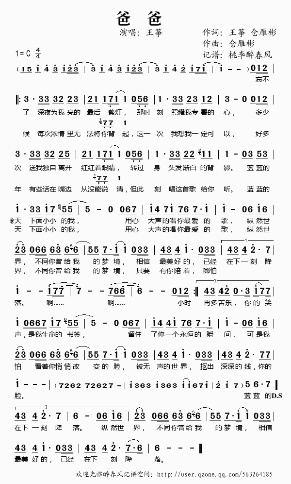 >> 爸爸——王筝(简谱)
