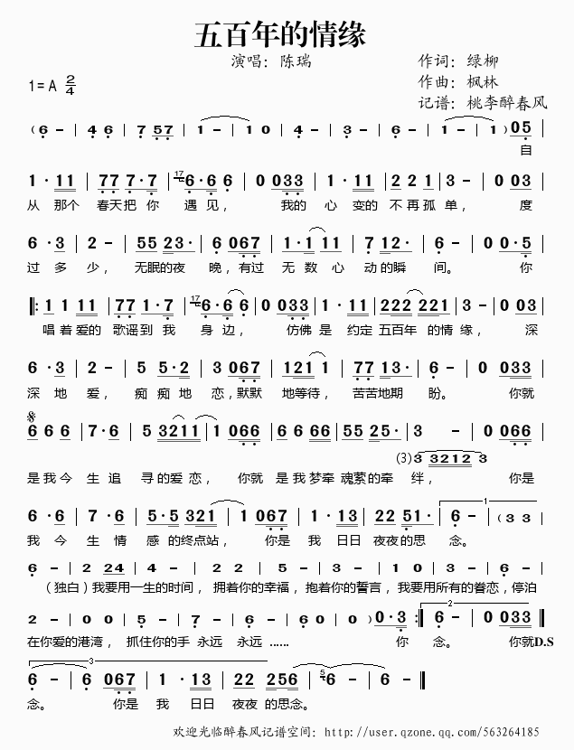 >> 五百年的情缘——陈瑞(简谱)