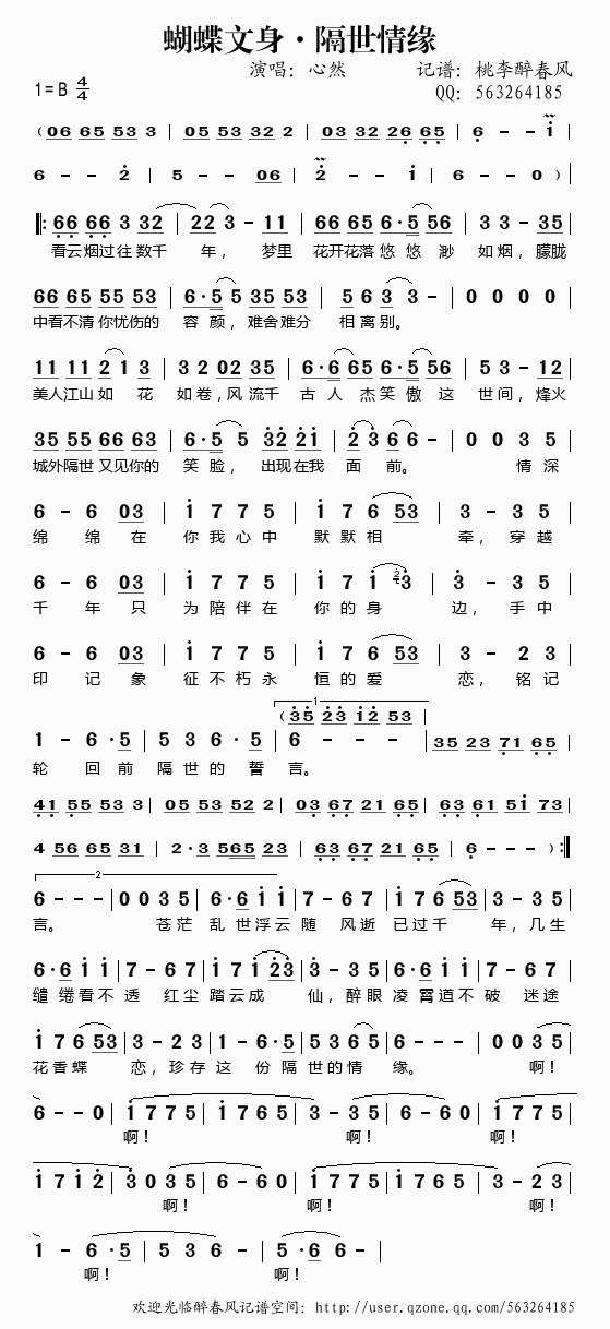 >> 蝴蝶文身·隔世情缘——心然(简谱)