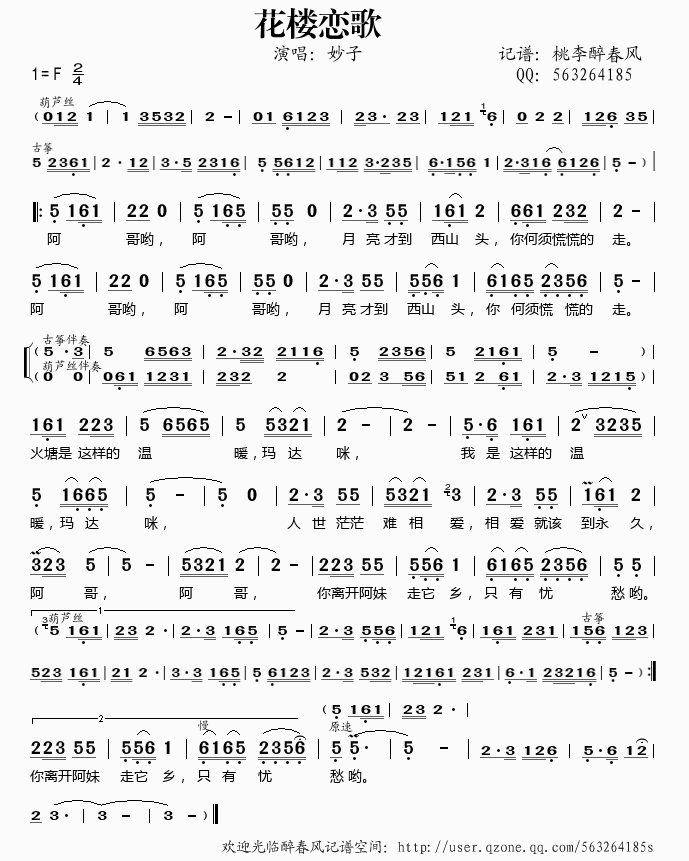 >> 花楼恋歌——妙子(简谱)