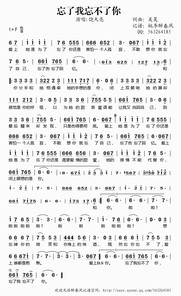 >> 忘了我忘不了你——饶天亮(简谱)