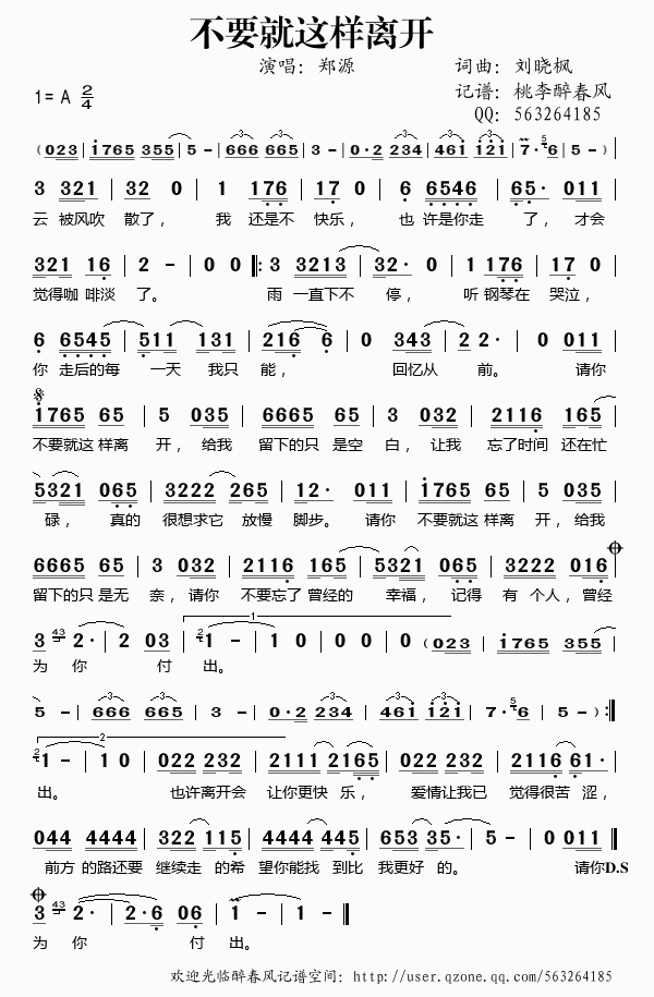不要就这样离开——郑源(简谱)