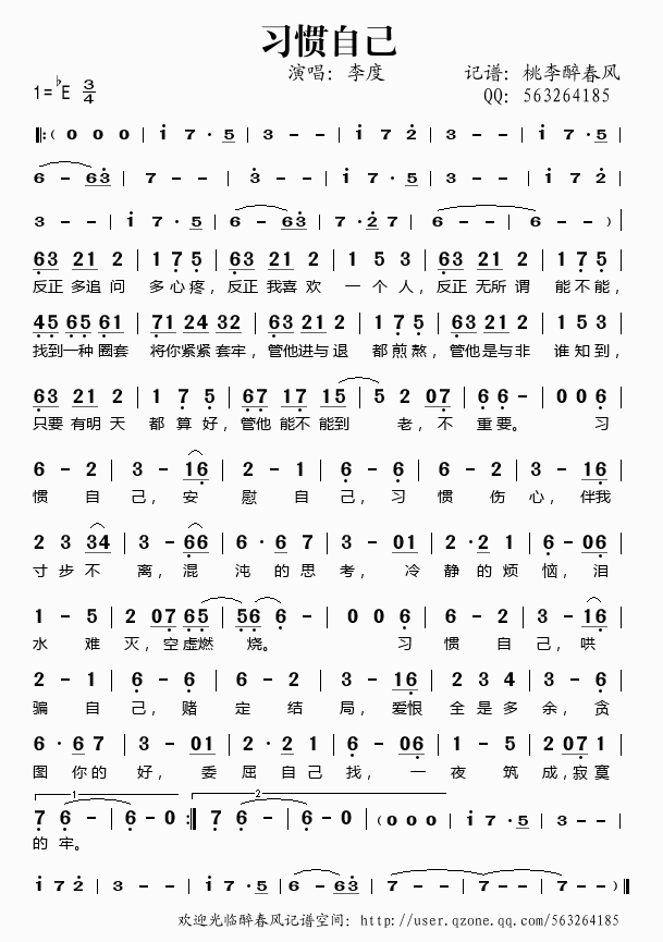>> 习惯自己——李度(简谱)