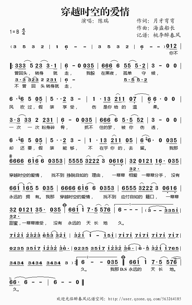 >> 穿越时空的爱情——陈瑞(简谱)