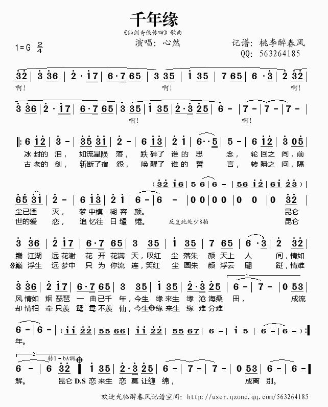 >> 千年缘(《仙剑奇侠传四》歌曲)——心然(简谱)