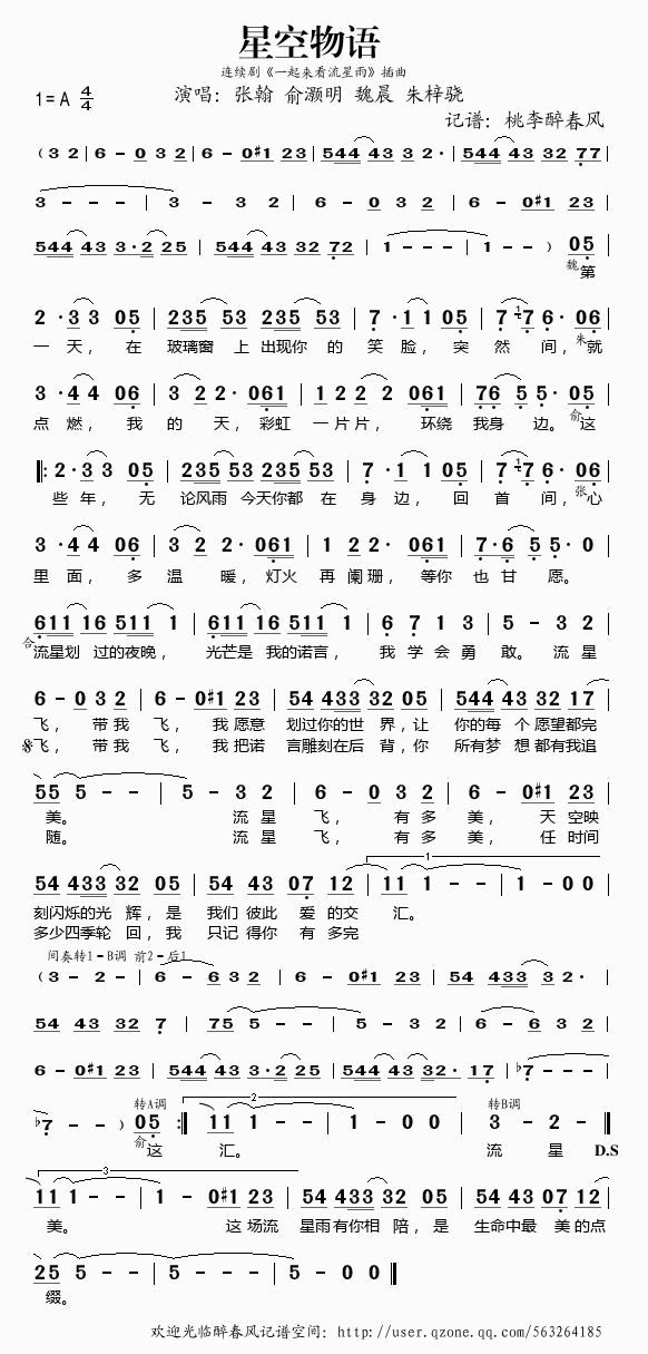 >> 星空物语《一起来看流星雨》插曲-魏晨等(简谱)