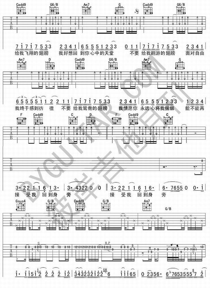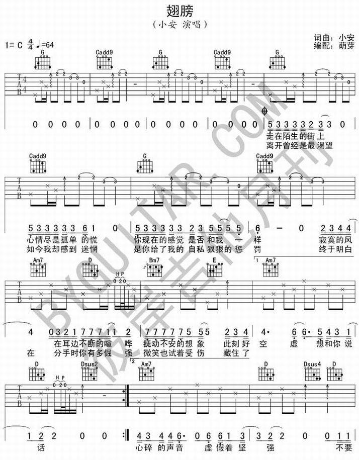 翅膀-小安(吉他谱 吉他曲谱 吉他六线谱 吉他歌谱 吉它谱 影视吉他谱)