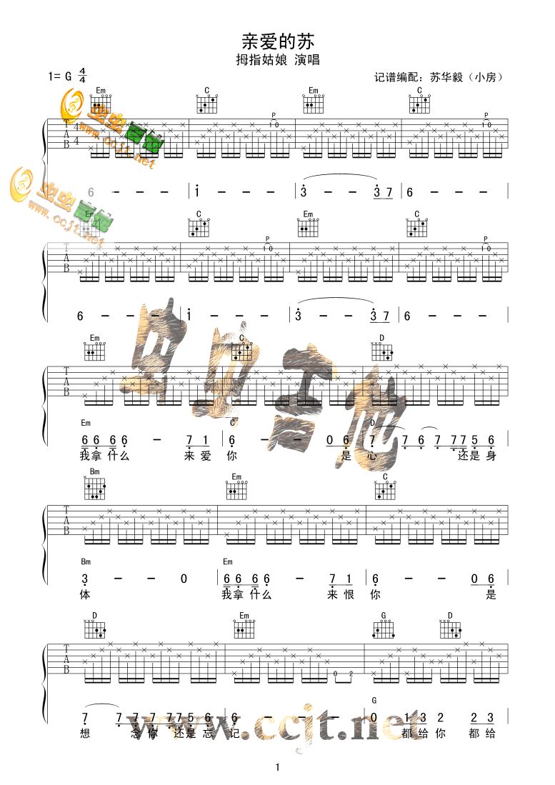 亲爱的苏-拇指姑娘乐队(吉他谱 吉他曲谱 吉他六线谱 吉他歌谱 吉它谱 影视吉他谱)