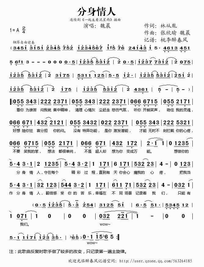 分身情人-魏晨(一起来看流星雨插曲ove版钢琴谱)