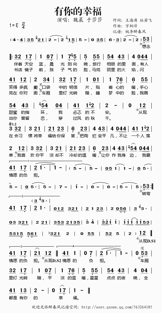 >> 有你的幸福——魏晨 于莎莎(简谱)
