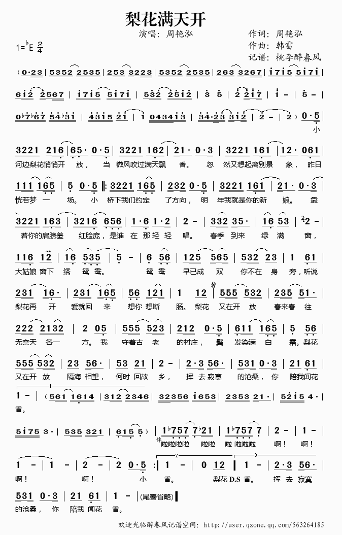 >> 梨花满天开——周艳泓(简谱)