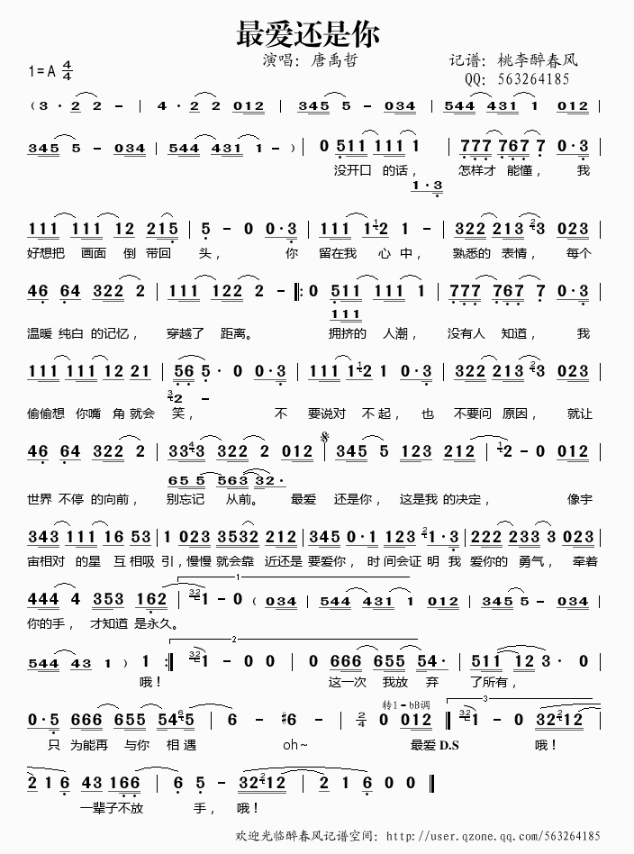 >> 最爱还是你——唐禹哲(简谱)