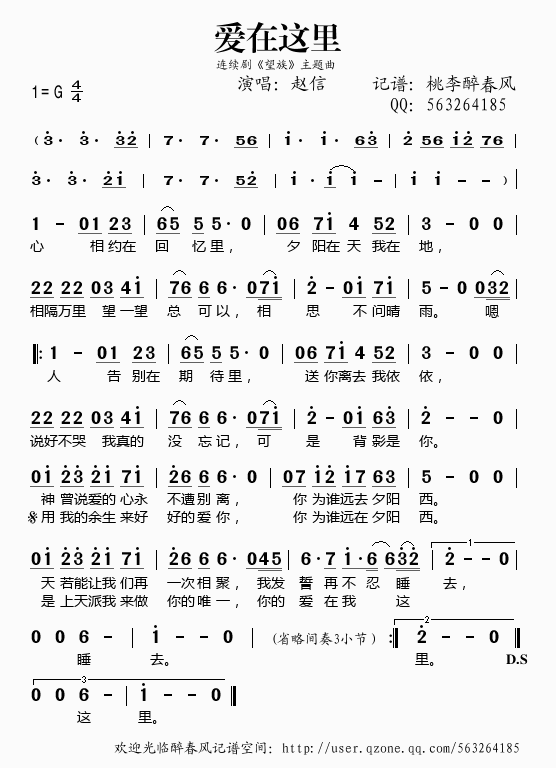 >> 爱在这里(《望族》主题曲)——赵信(简谱)