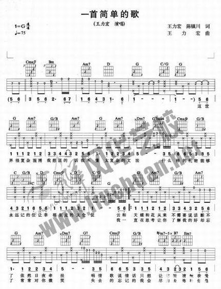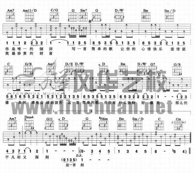 一首简单的歌-王力宏(吉他谱 吉他曲谱 吉他六线谱 吉他歌谱 吉它谱 影视吉他谱)