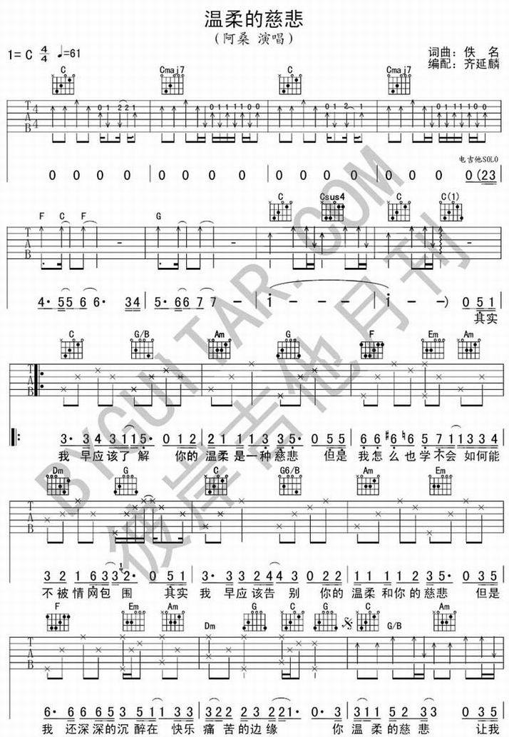 复制到“记事本”里,保存为: 温柔的慈悲-阿桑.lrc