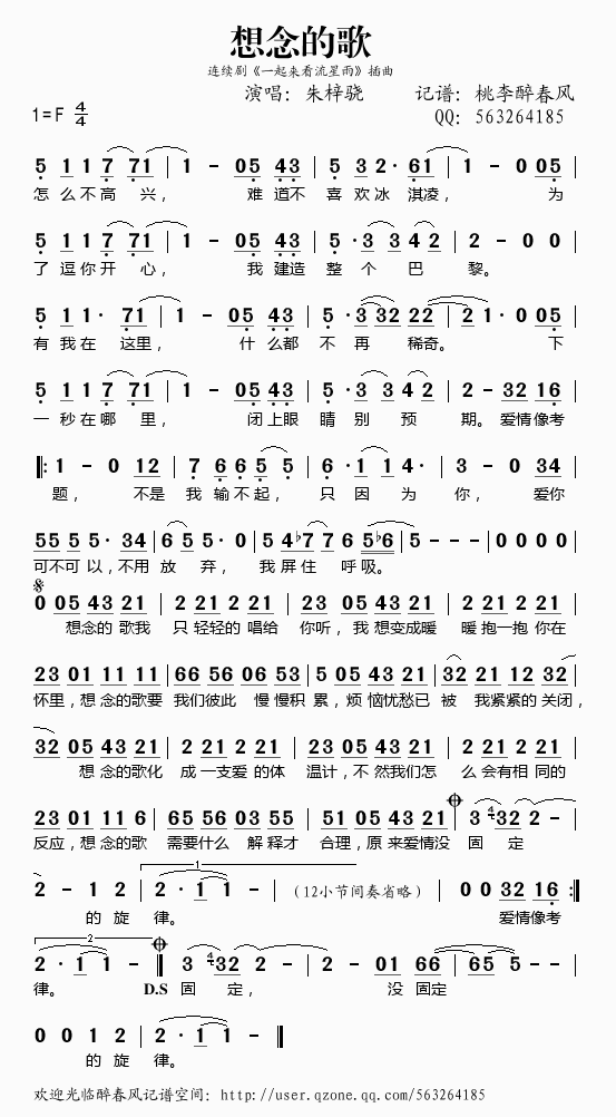 想念的歌《一起来看流星雨》插曲-朱梓骁(简谱)