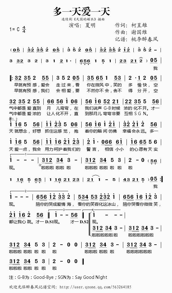 多一天爱一天(《天国的嫁衣》插曲)——夏明
