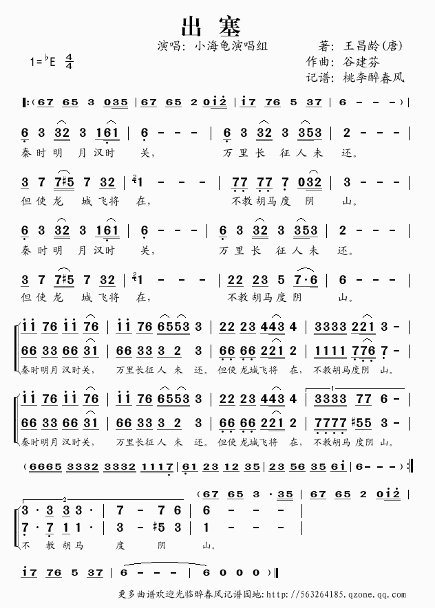 >> 谷建芬新学堂儿歌之——出塞(简谱)