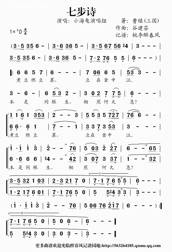 >> 谷建芬新学堂儿歌之——七步诗(简谱)