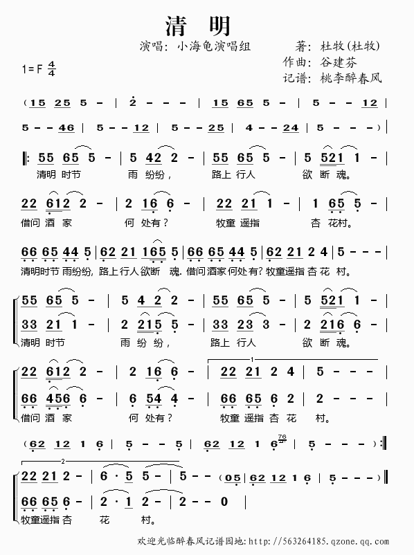 >> 谷建芬新学堂儿歌之——清明(简谱)