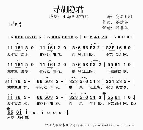 >> 谷建芬新学堂儿歌之——寻胡隐君(简谱)
