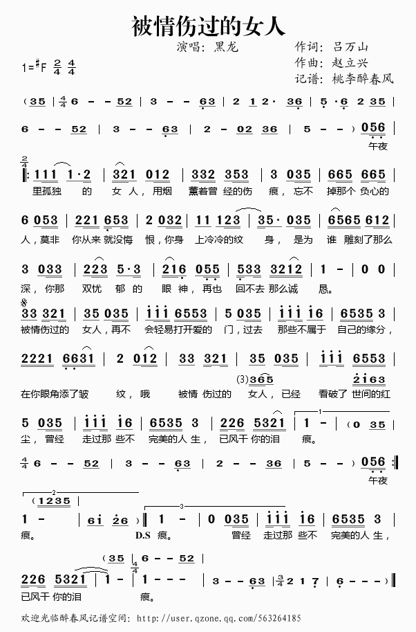 被情伤过的女人——黑龙(简谱)