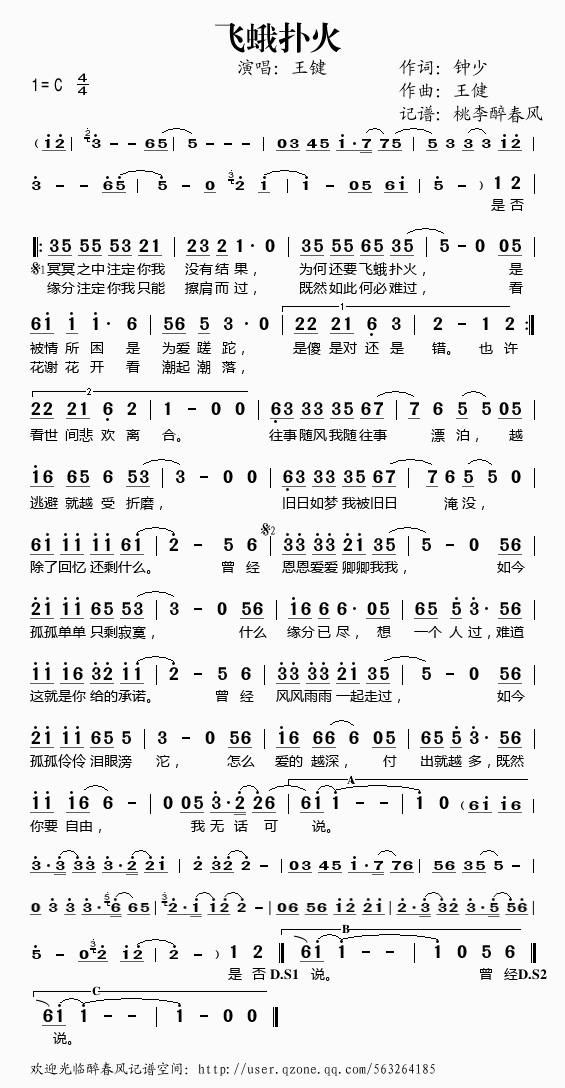 飞蛾扑火——王键(简谱)