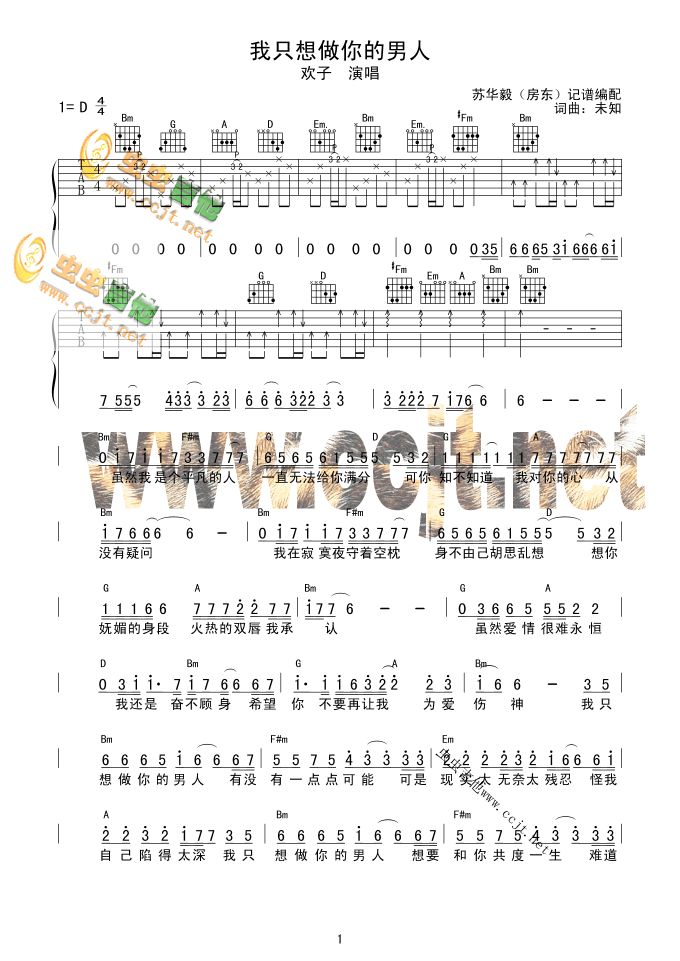 >> 只想做你的男人-欢子(简谱+和弦)