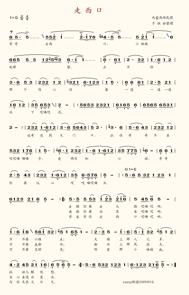 跟你走-电视剧《走西口》片尾曲(简谱)