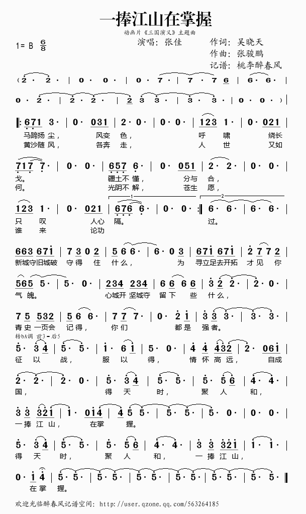 >> 一捧江山在掌握(动画片《三国演义》主题曲)——张佳(简谱)