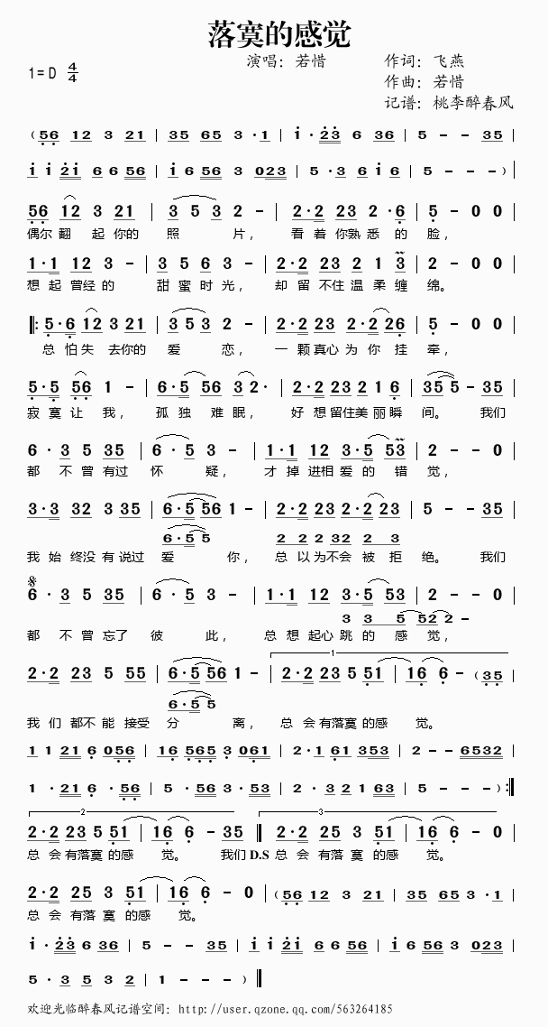 落寞的感觉——若惜(简谱)
