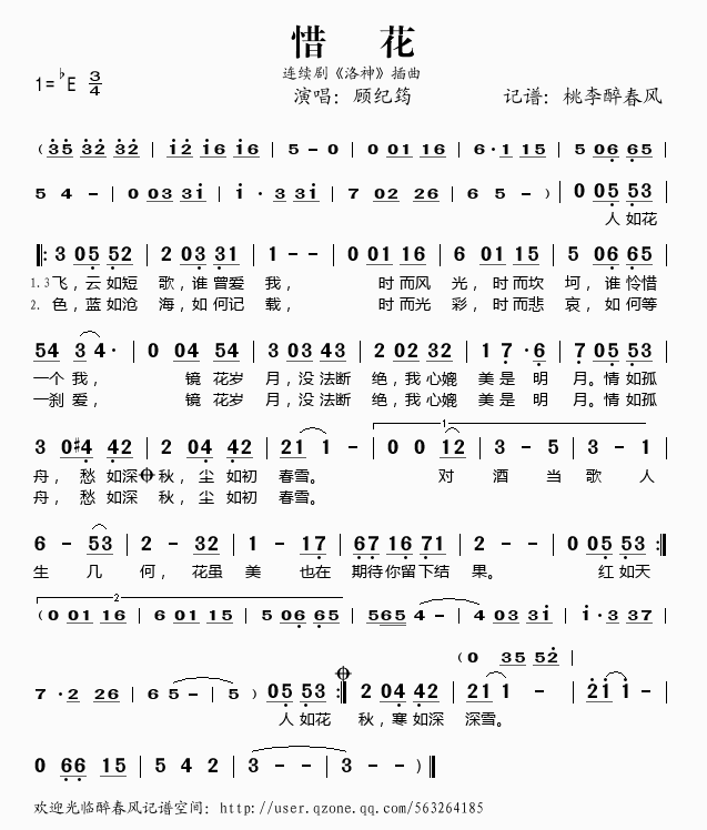 惜花(连续剧《洛神》主题曲)——顾纪筠(简谱)