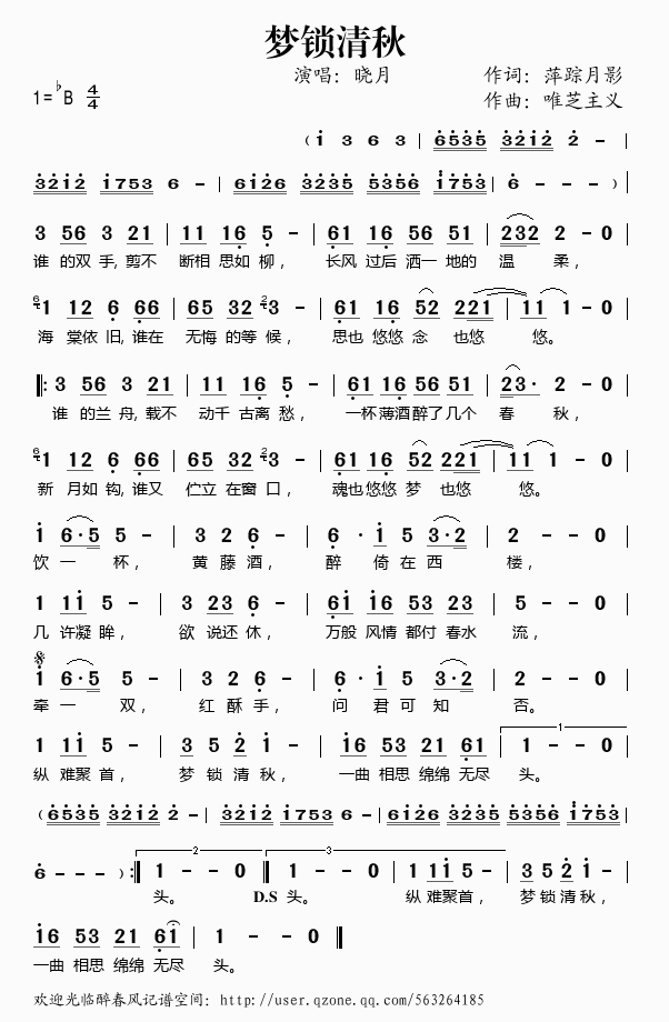 >> 梦锁清秋——晓月(简谱)