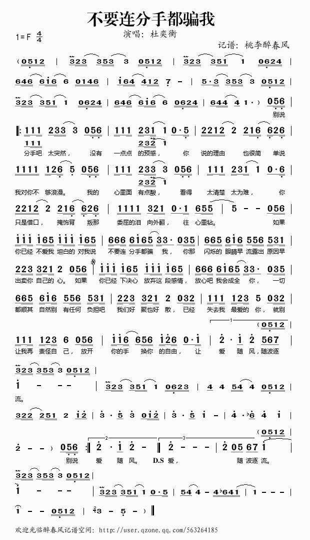 >> 不要连分手都骗我——杜奕衡(简谱)