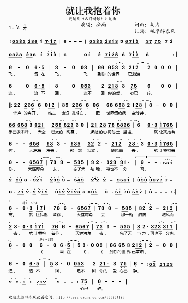 >> 就让我抱着你(《名门新娘》片尾曲)——摩羯(简谱)