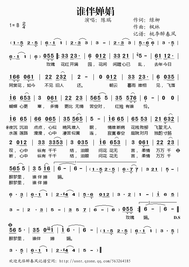 >> 谁伴婵娟——陈瑞(简谱)