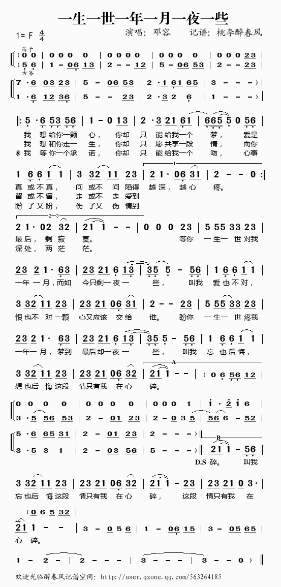 >> 一生一世一年一月一夜一些——邓容(简谱)