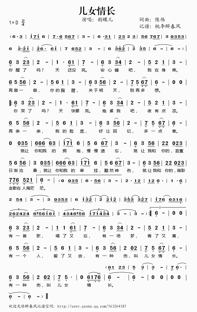 儿女情长——韵蝶儿(简谱)