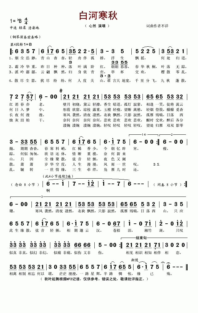 盛唐夜唱-心然(《戡魔录》插曲简谱)