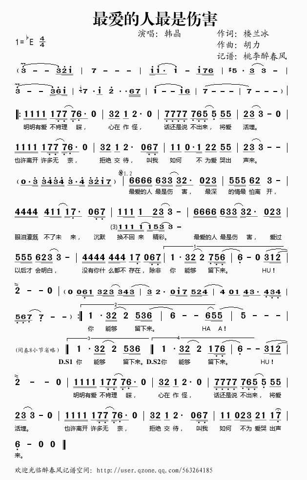 >> 最爱的人最是伤害——韩晶(简谱)