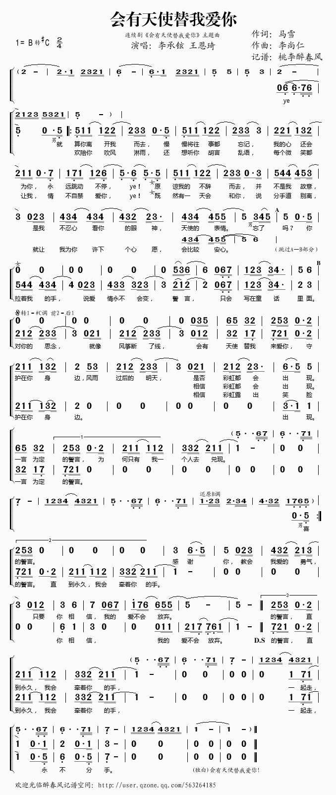 会有天使替我爱你——李承铉 王恩琦(简谱)
