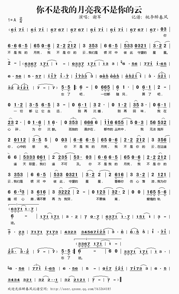 >> 你不是我的月亮我不是你的云——谢军(简谱)