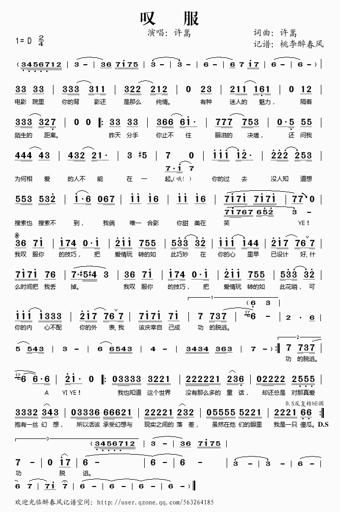 >> 叹服——许嵩(简谱)